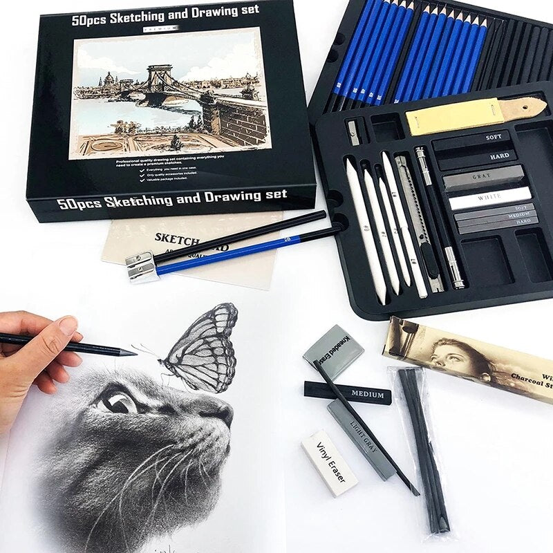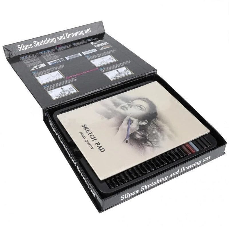 50pcs Sketching Pencils Set Professional Drawing Wood Pencil Kit