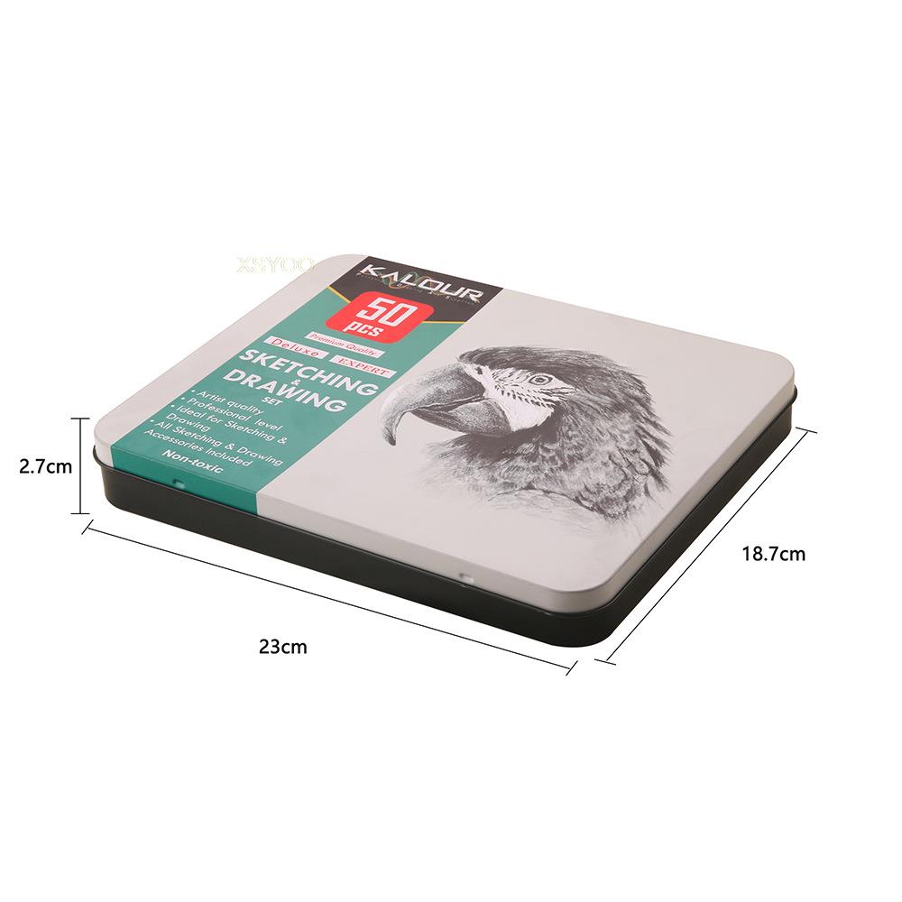 52pcs Graphite Charcoal Drawing Pencil Set With Iron Box Professional Sketch Wood Pencil Tool Kit