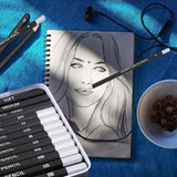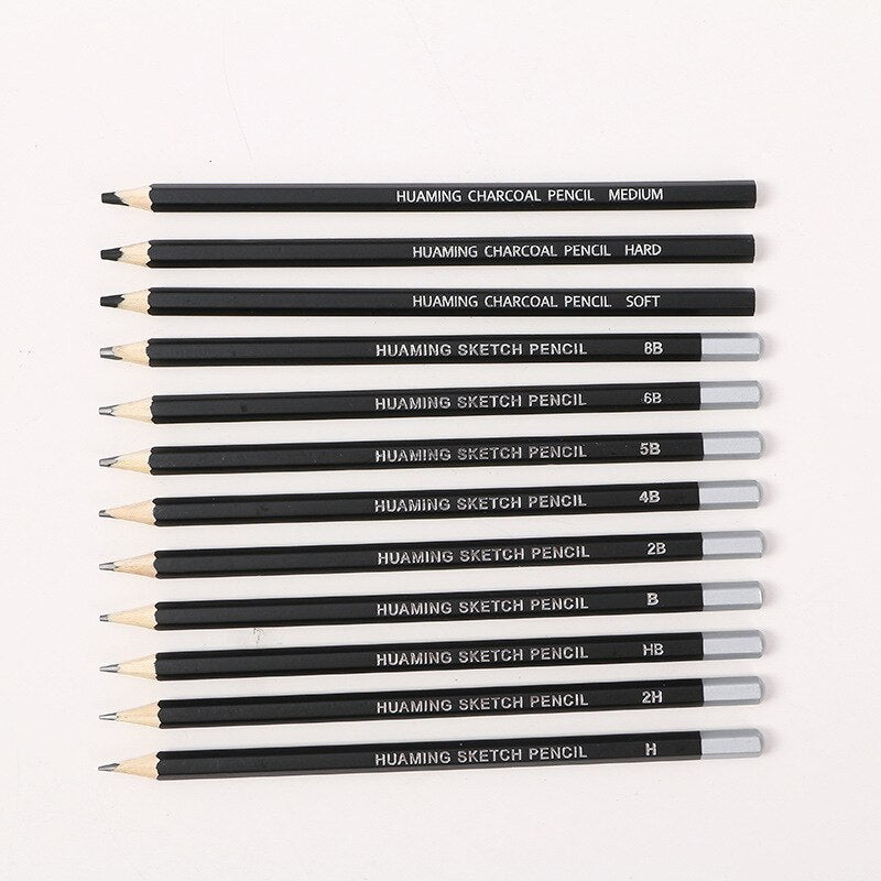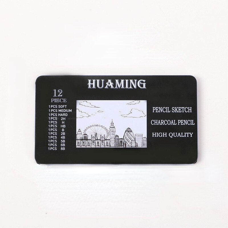 Charcoal Pencil Sketch Set 12 Pcs Soft Medium Hard Drawing Pencils Set 2H-8B With Iron Box