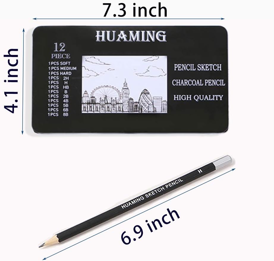 12 Pcs Charcoal Pen Soft Medium Hard 2H-8B Sketch Pencil Set With Iron Box Painting Drawing Sketch Pen For Beginners,Kids,Adults and Artists