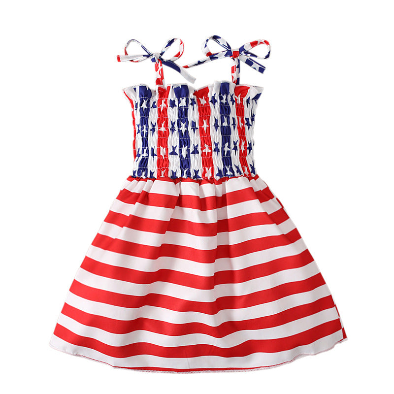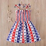 Kid Baby Girls Strap Independence Day Summer Star Flag Banded Party Dresses
