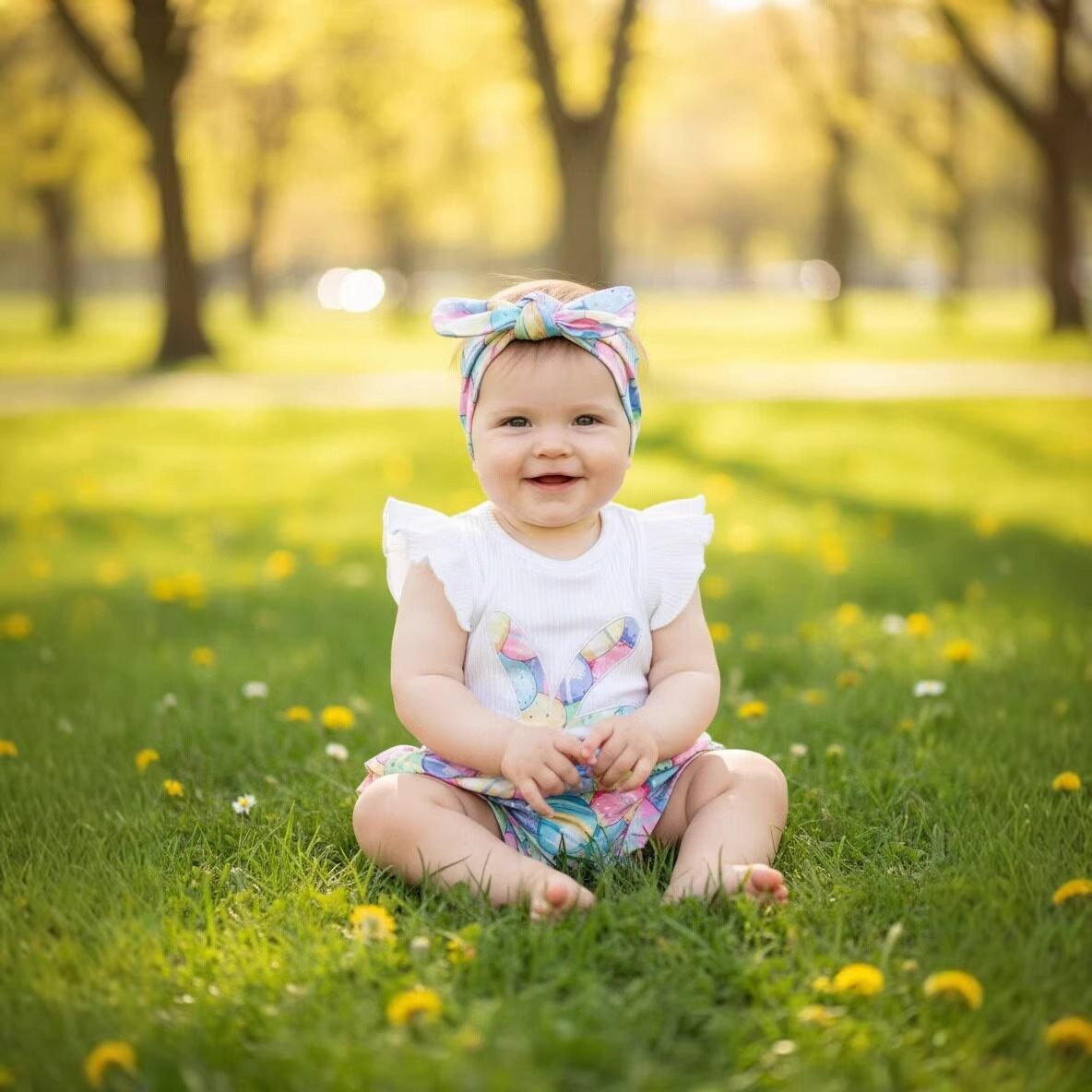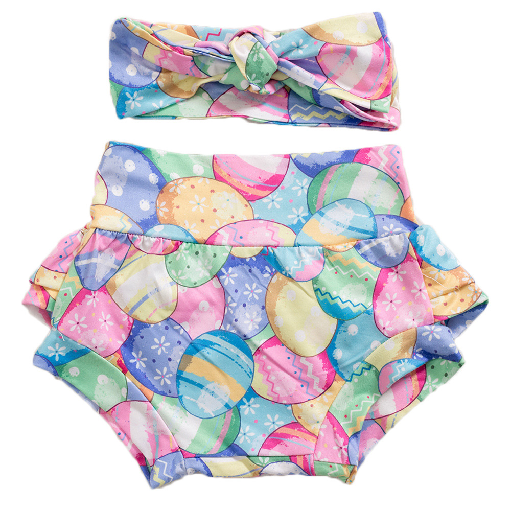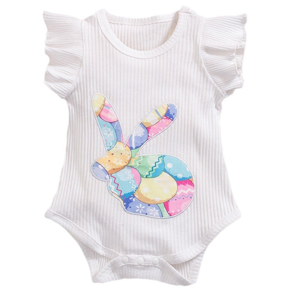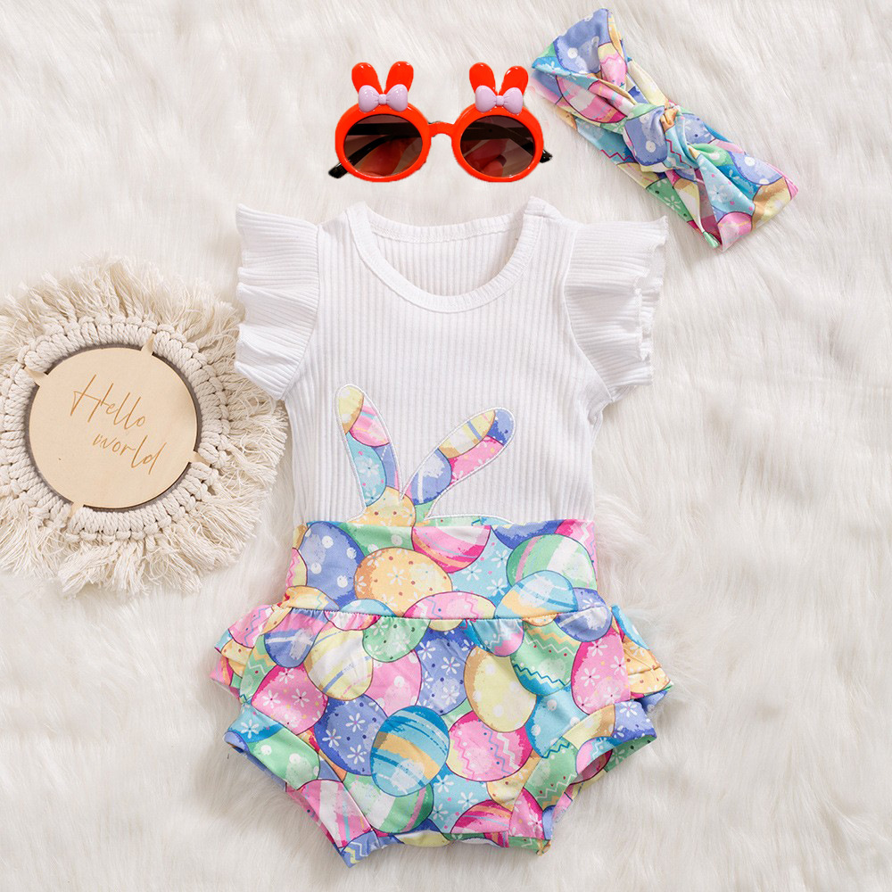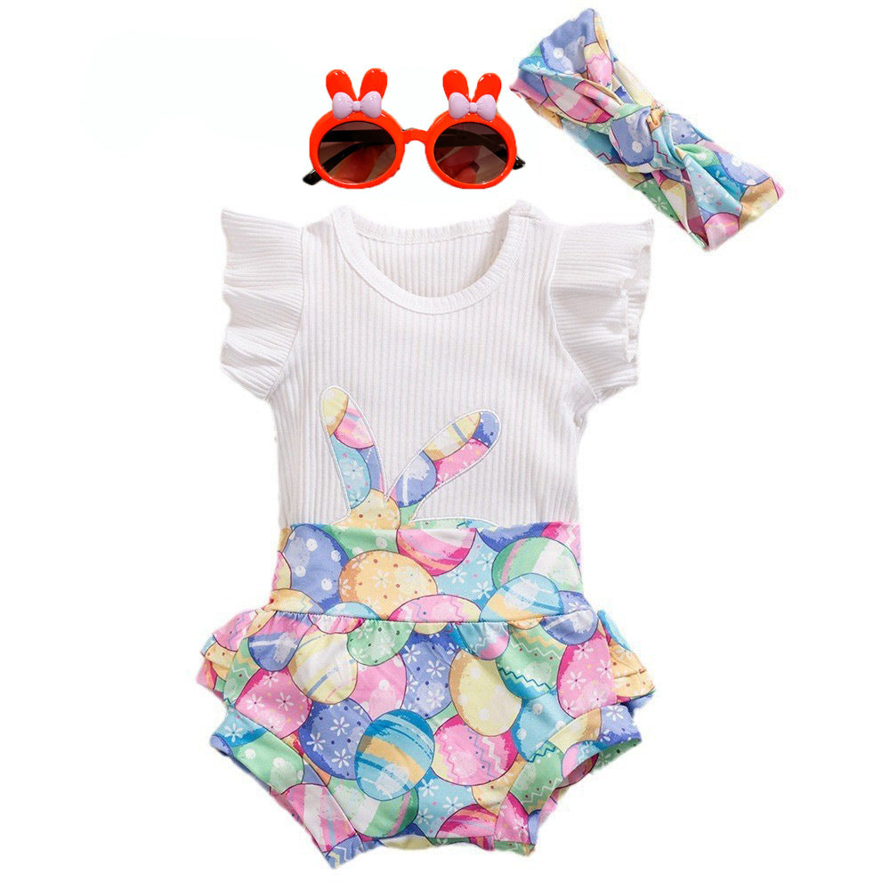Easter Baby Girls Flying Sleeve Romper Rabbit Egg 3 Pcs Set