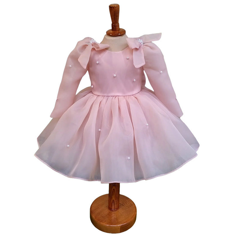 Kid Baby Girl Pink Long Sleeve Fluffy Birthday Piano Dresses