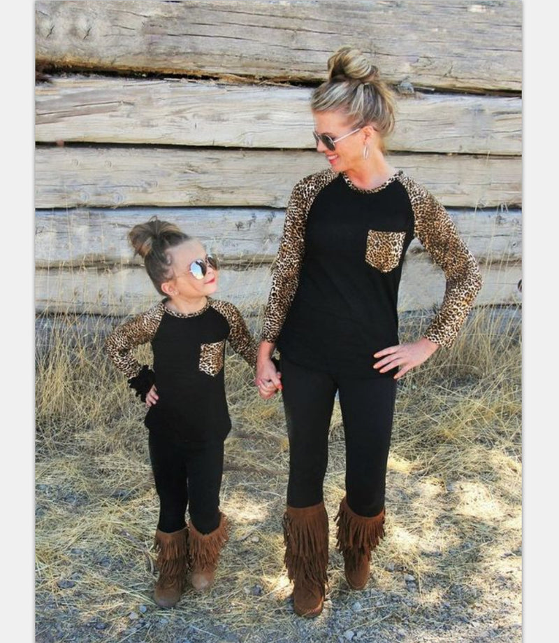 Brand Name: NoEnName_Null Style: Fashion Sleeve Length(cm): Full Pattern Type: Leopard Department Name: Mother & Daughter Fit: Fits true to size, take your normal size Item Type: T-Shirts