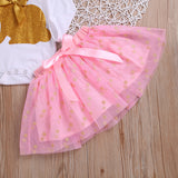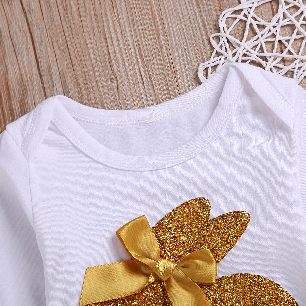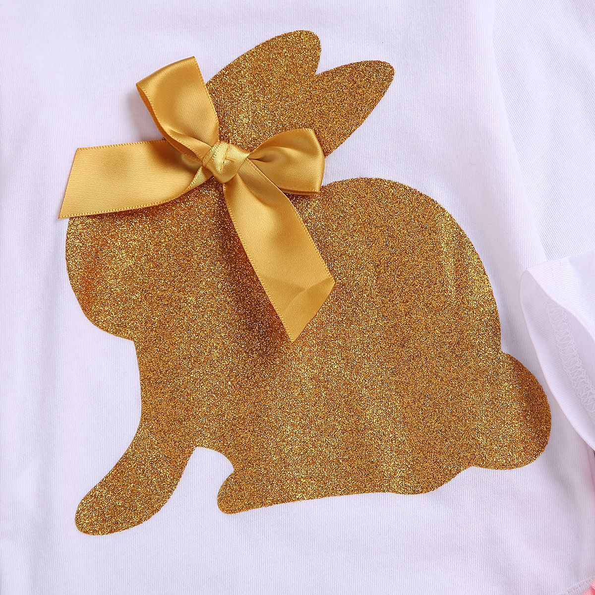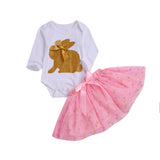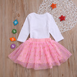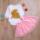 Baby Girls Easter Bunny Print Top Mesh Skirt Princess Crawlsuit 2 Pcs Set