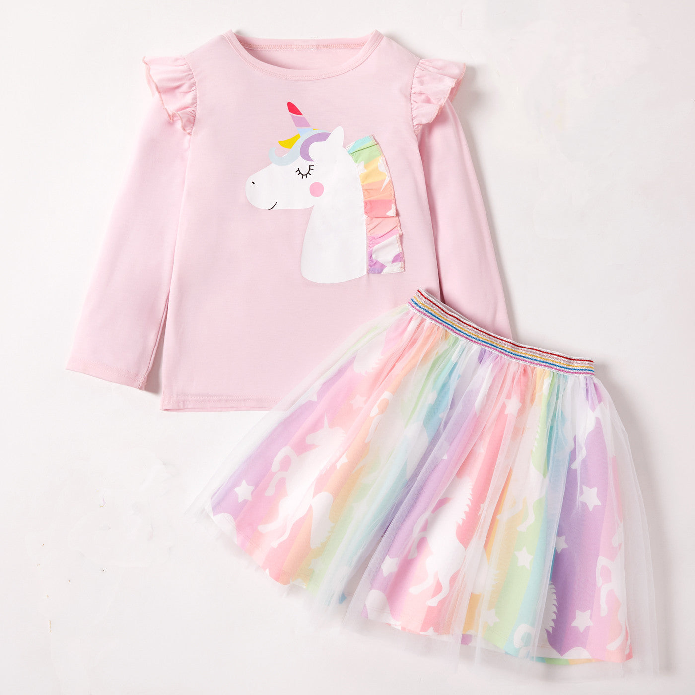 Kid Baby Girls Cartoon Pony Long-sleeved Fluffy 2 Pcs Sets