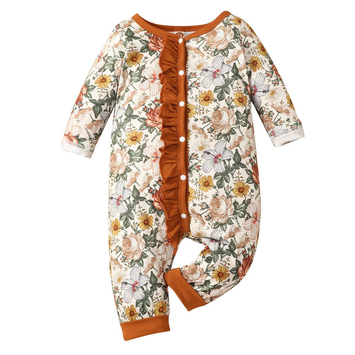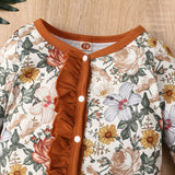 0-18M Infants Baby One-piece Long Sleeved Floral Lace Ruffles Rompers