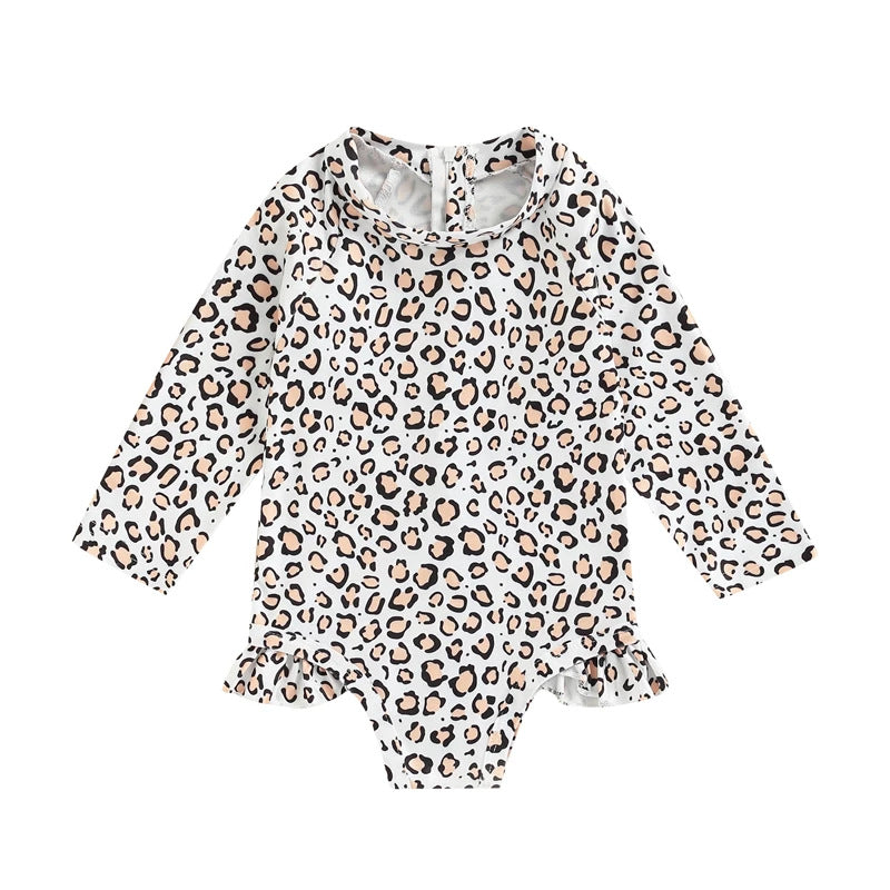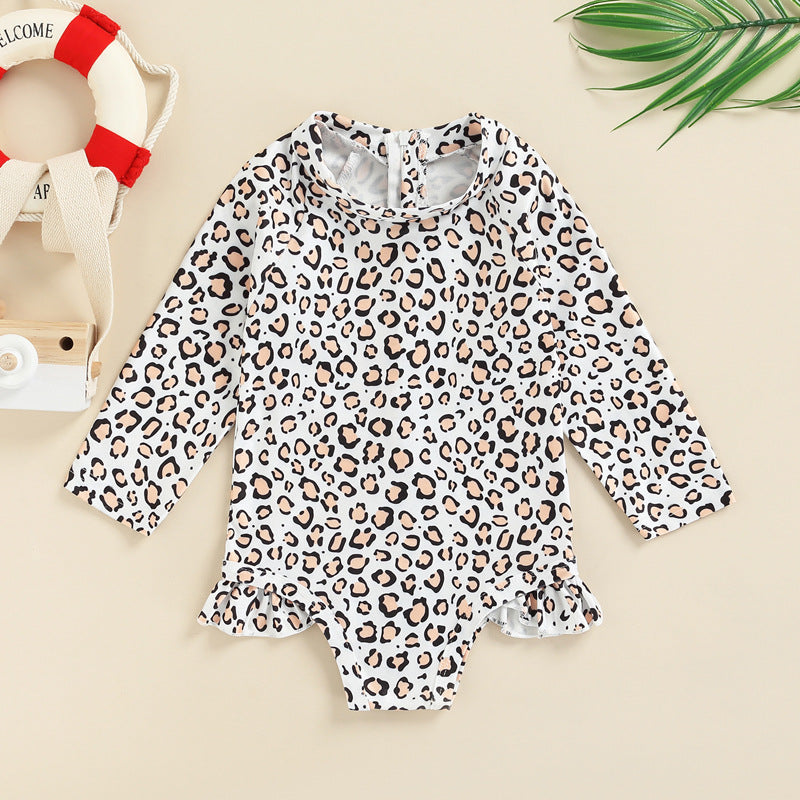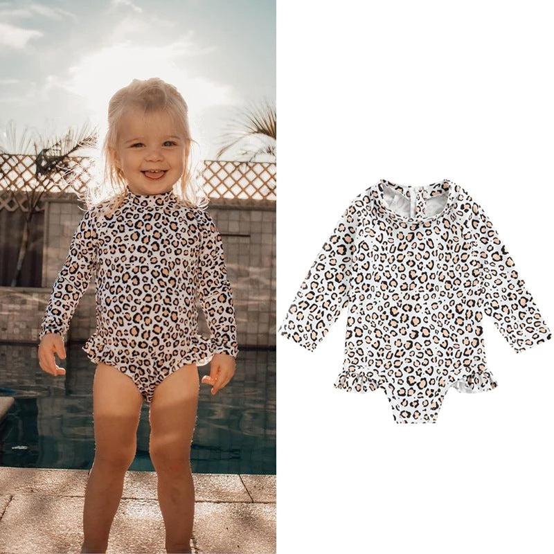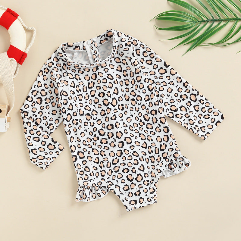 Kid Girl Bathing Suit Leopard Print Bathing Beach Romper Swimsuits