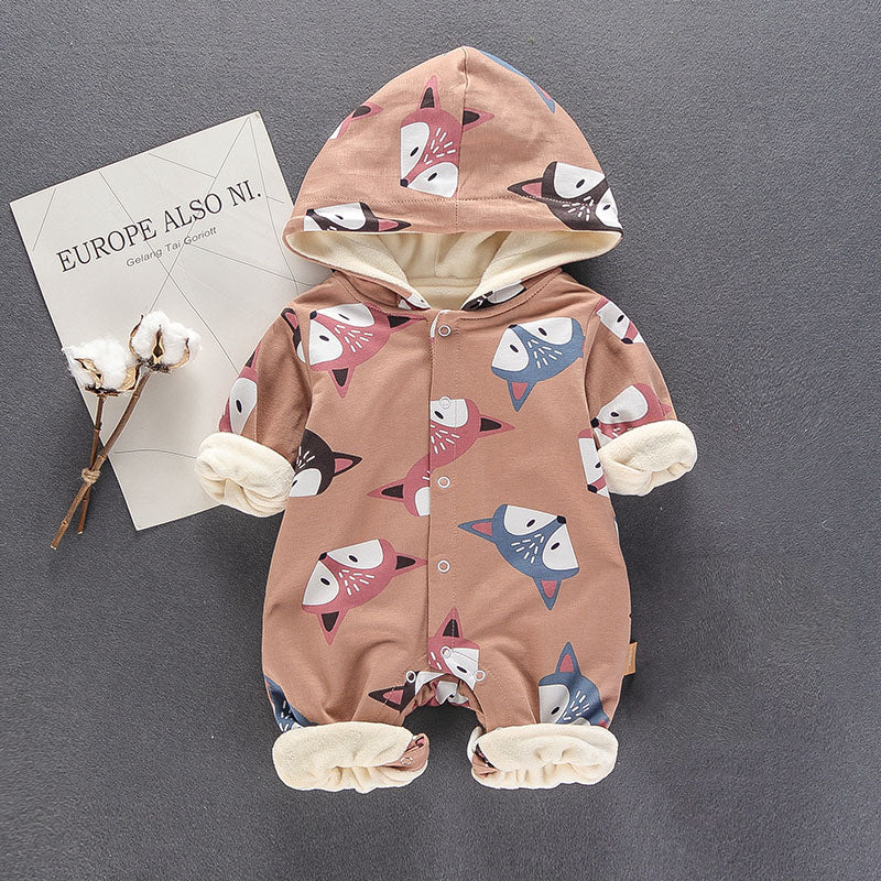 New Arrival Winter Lovely Fox Hooded Long-sleeve Fleece Romper