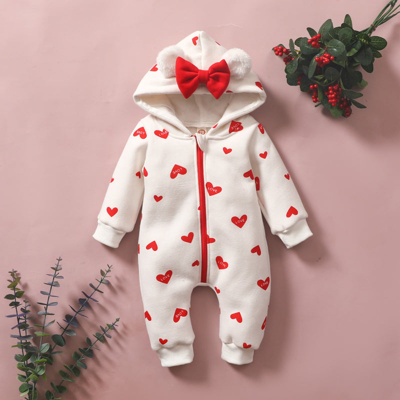 Baby Girl Cartoon Love Print Romper Long Sleeve Jumpsuit Outfits