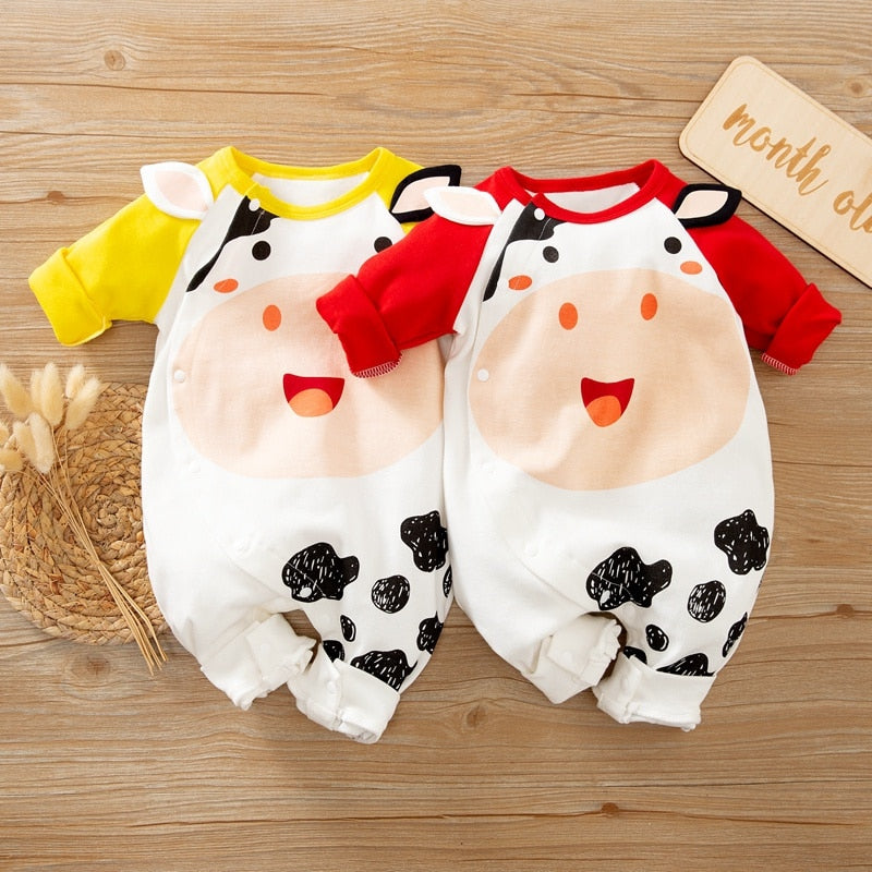 New Arrival Autumn and Spring Baby Romper Adorable Cow Splice Jumpsuit