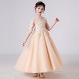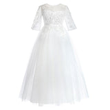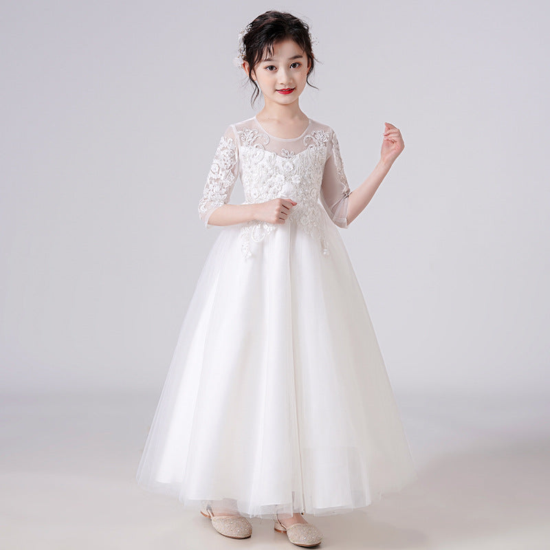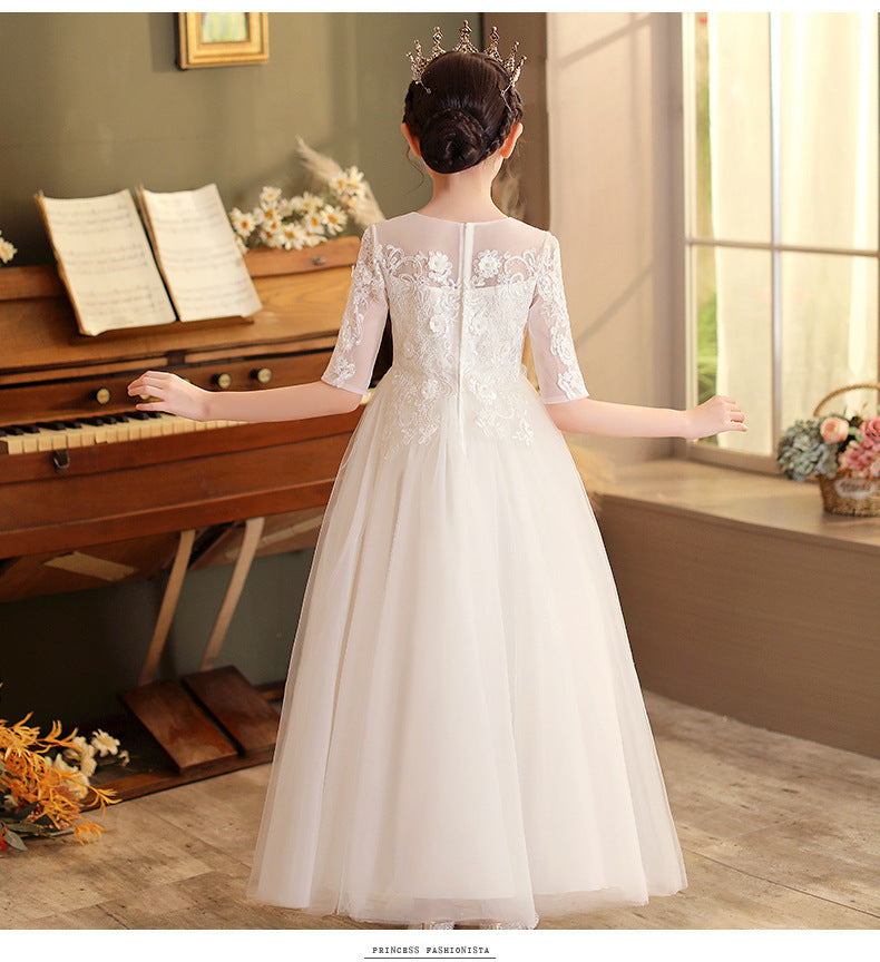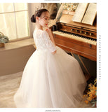 Kid Girl Banquet Long Sleeve Fluffy Yarn White Wedding Princess Dresses