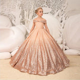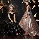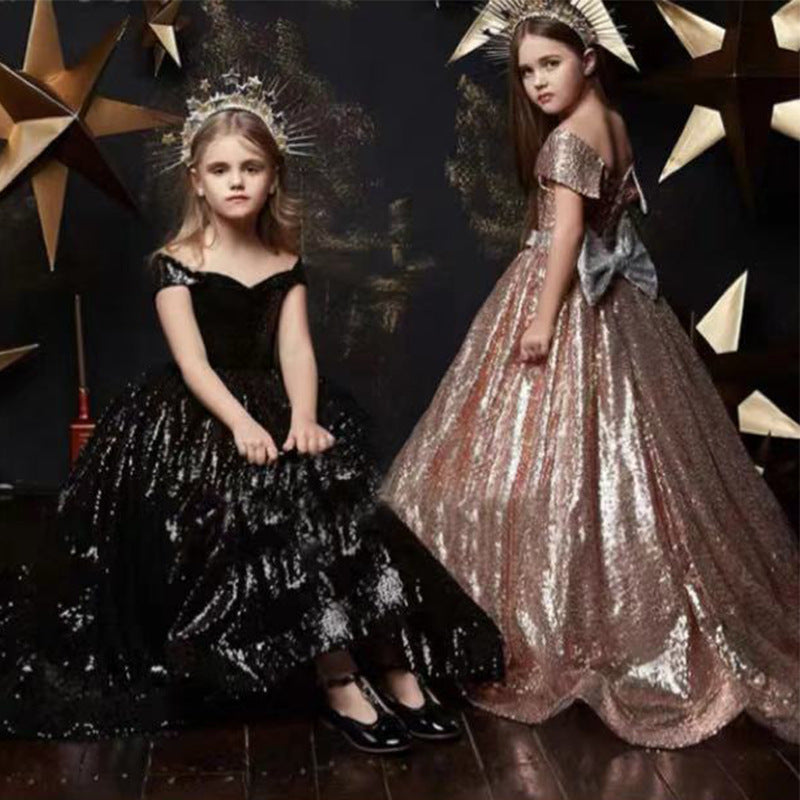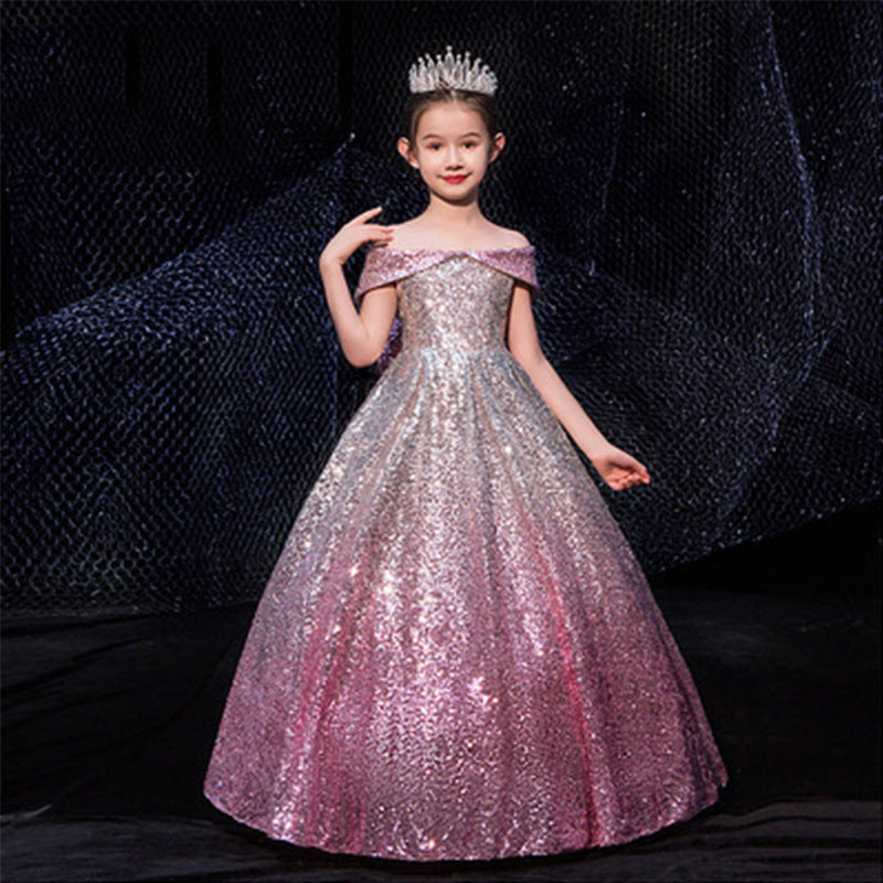 Kid Girl Silver Blue Gradual Long Tuxedo Piano Performance Dress
