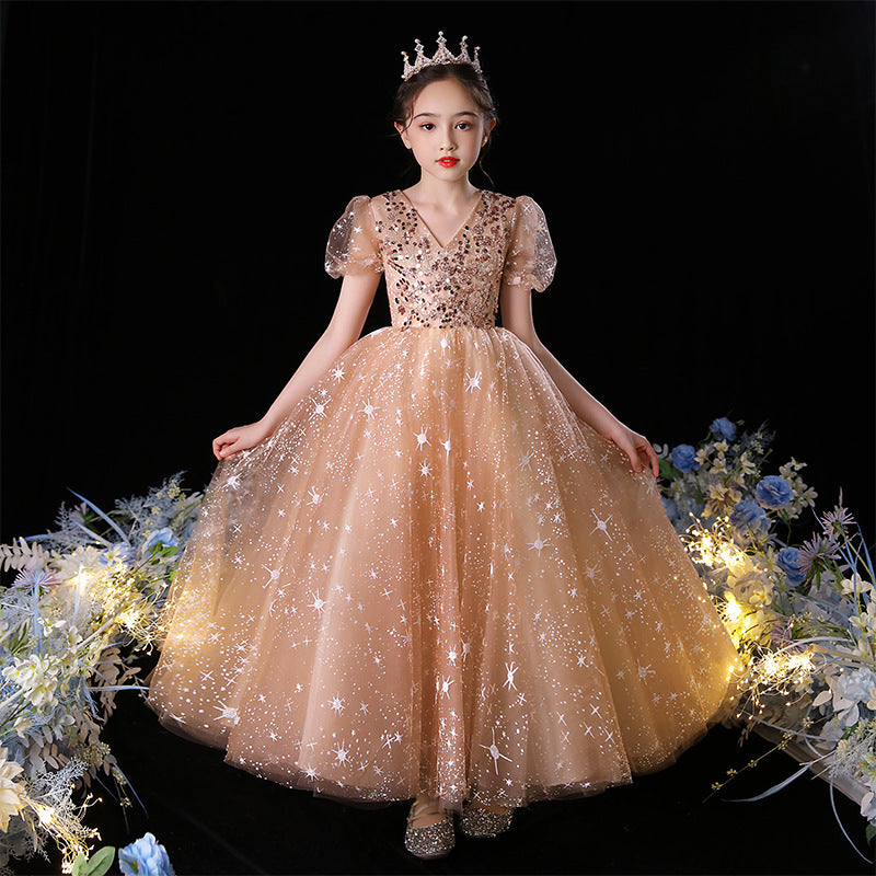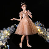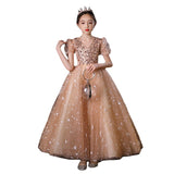 Kid Girls Princess Fashionable Puff Piano Performance Dress