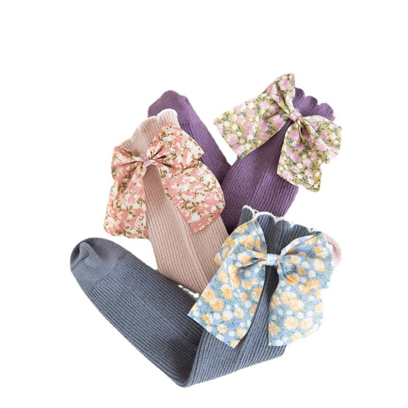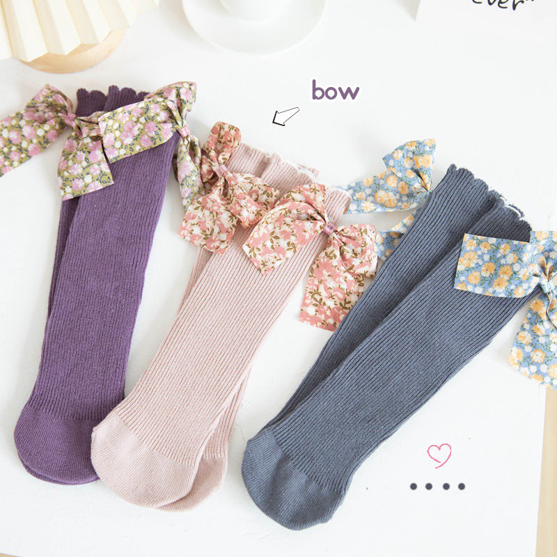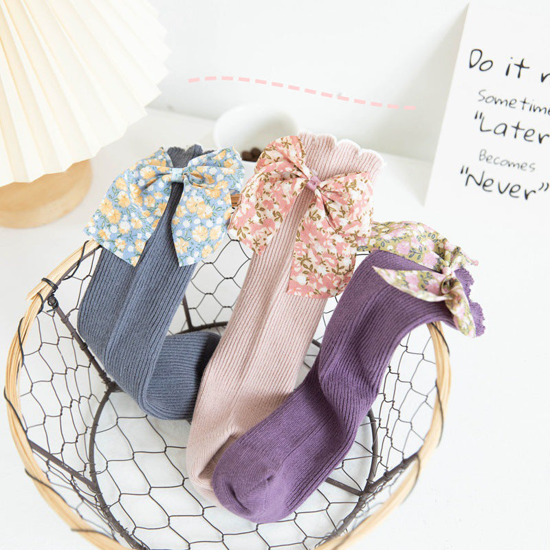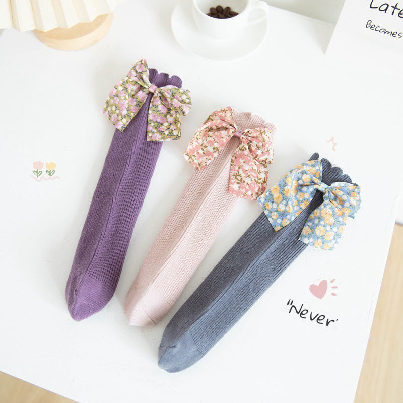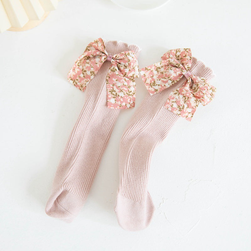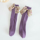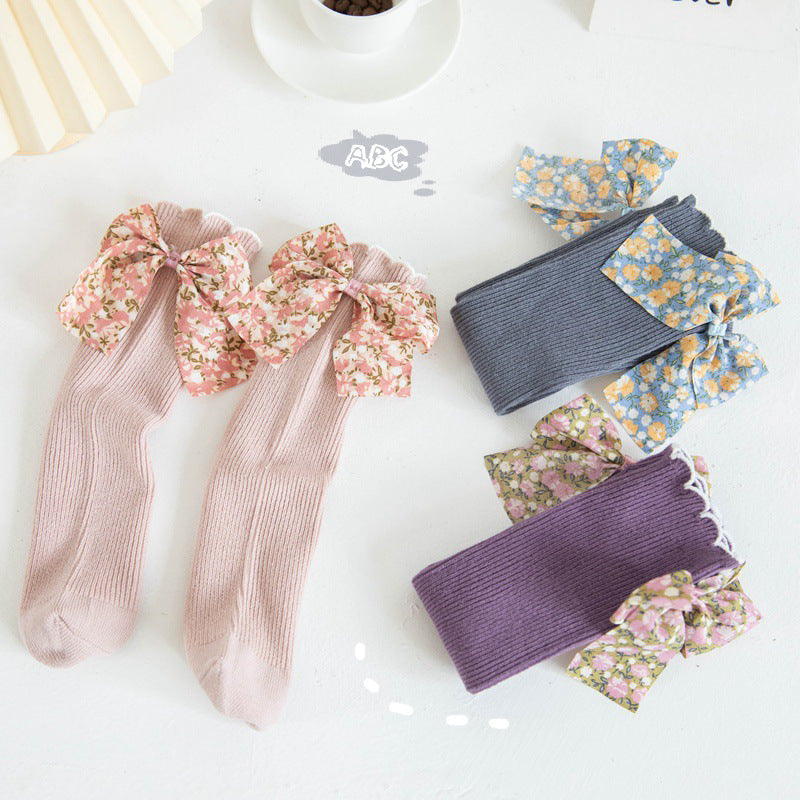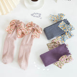 Baby Girl Floral Printed Bow Socks Knee High Socks Sweet Long Socks