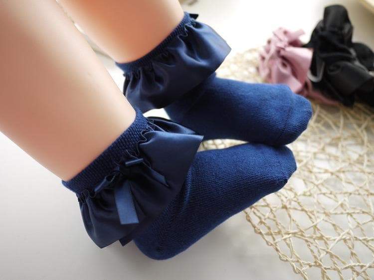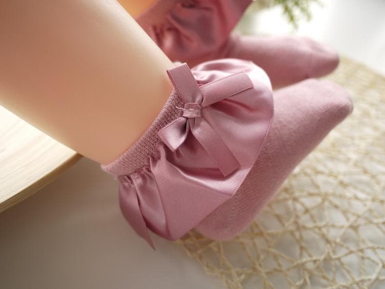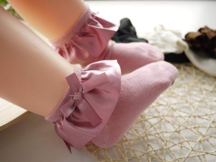 Kid Girl Bow Decor Silk Design Stretchy Solid Socks