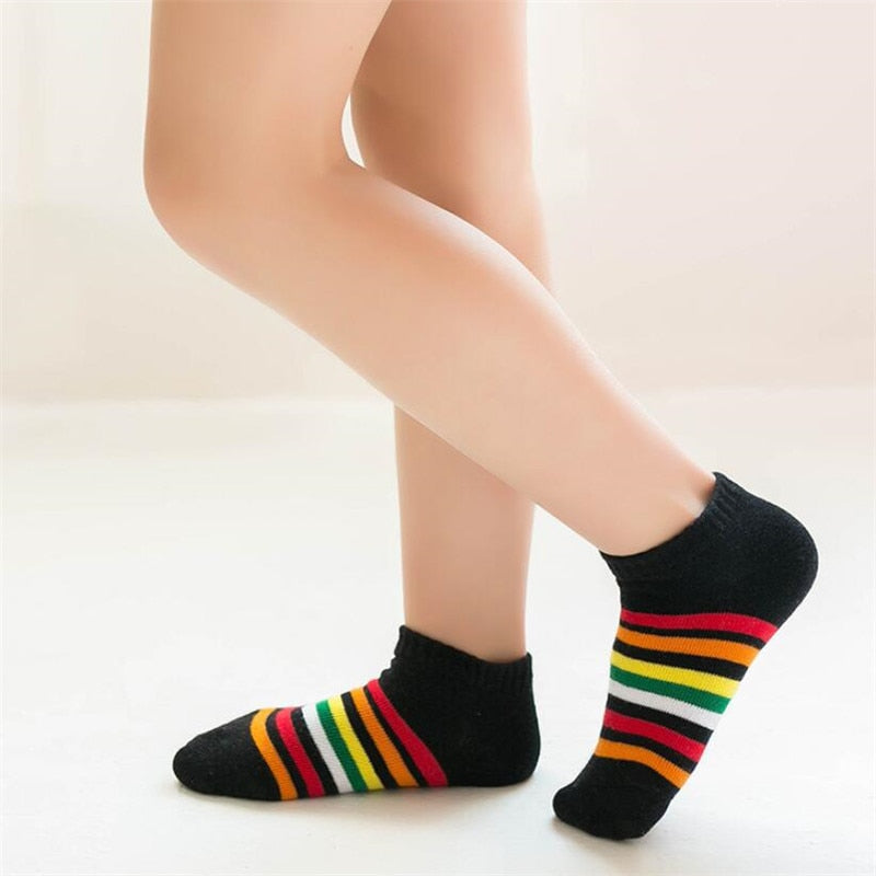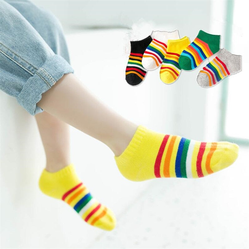 Kids Rainbow Striped Boys Girls Spring Autumn Striped Boat Socks 5 pair/1lot