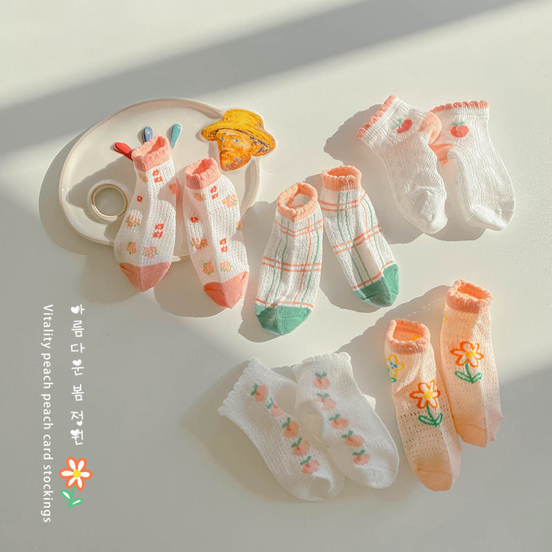 Kids Baby Girl Lattice Cartoon Mesh Socks Cotton Thin Socks