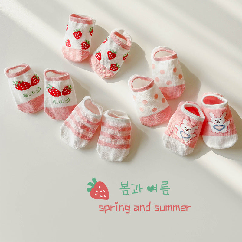 Kids Girl Stripes Socks Soft Cotton Cute Cartoon 5 Pairs 0-5 Years