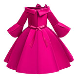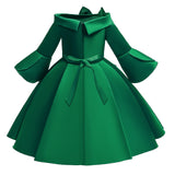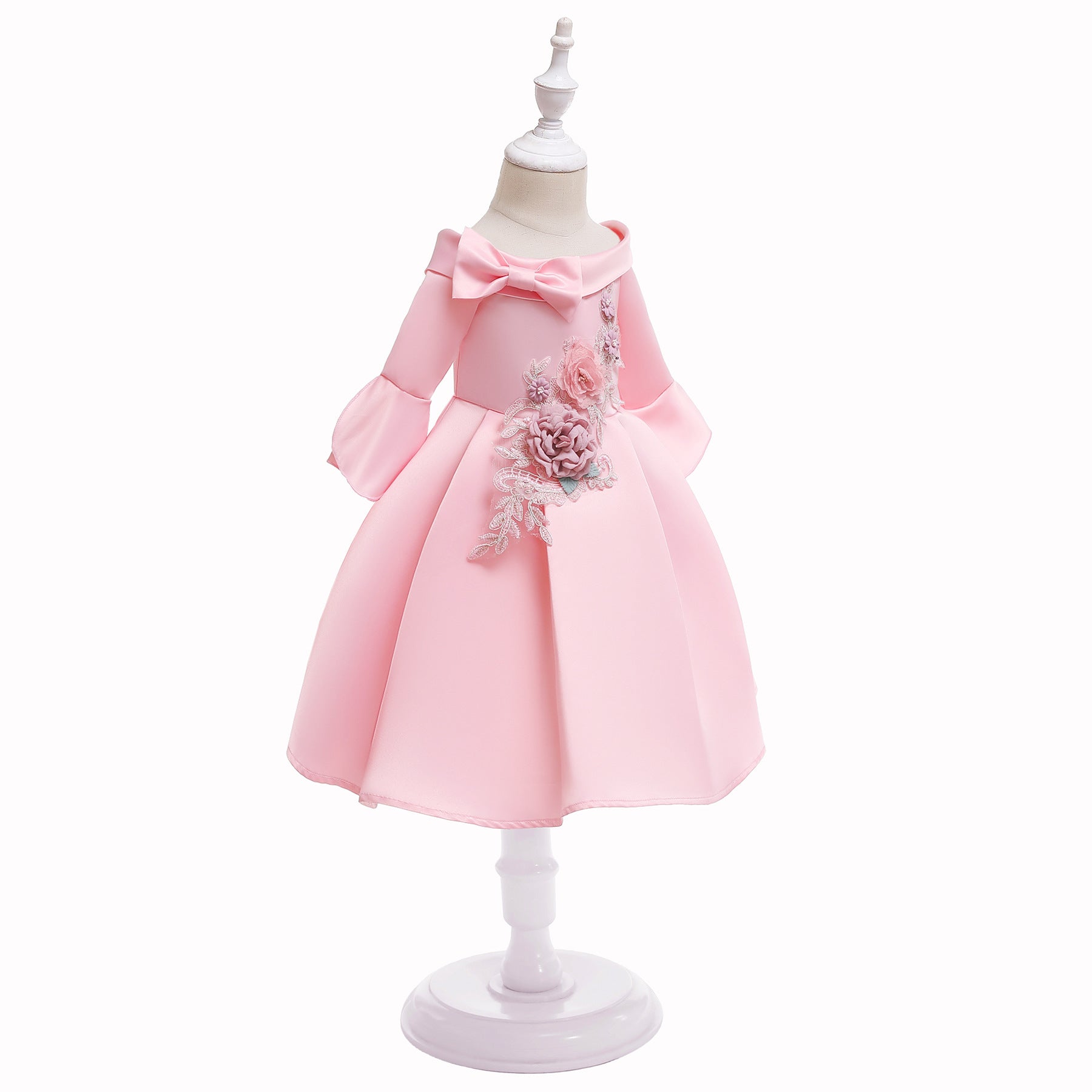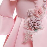 Kid Girl Princess Off Shoulder Middle Sleeve Satin Gown Embroidered Dresses
