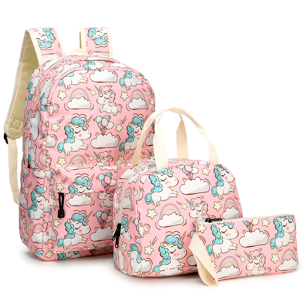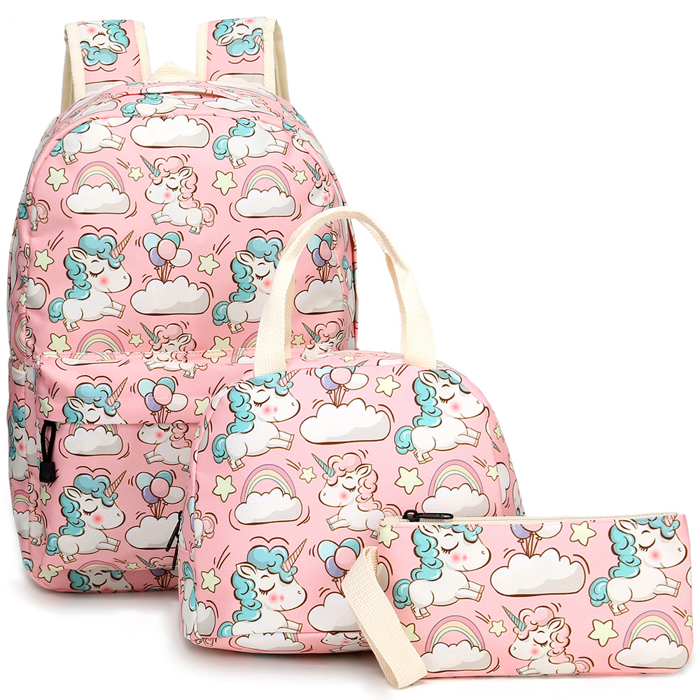 Unicorn Powder Backpack 3pcs Set Student Schoolbag