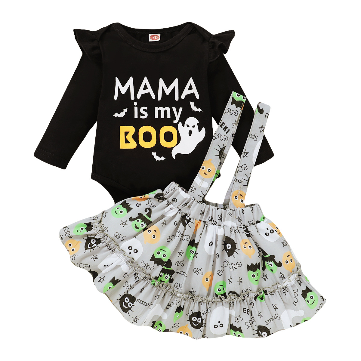 0-18M Baby Girls Spring Autumn Halloween Alphabet Print Halter 2 Pcs Sets