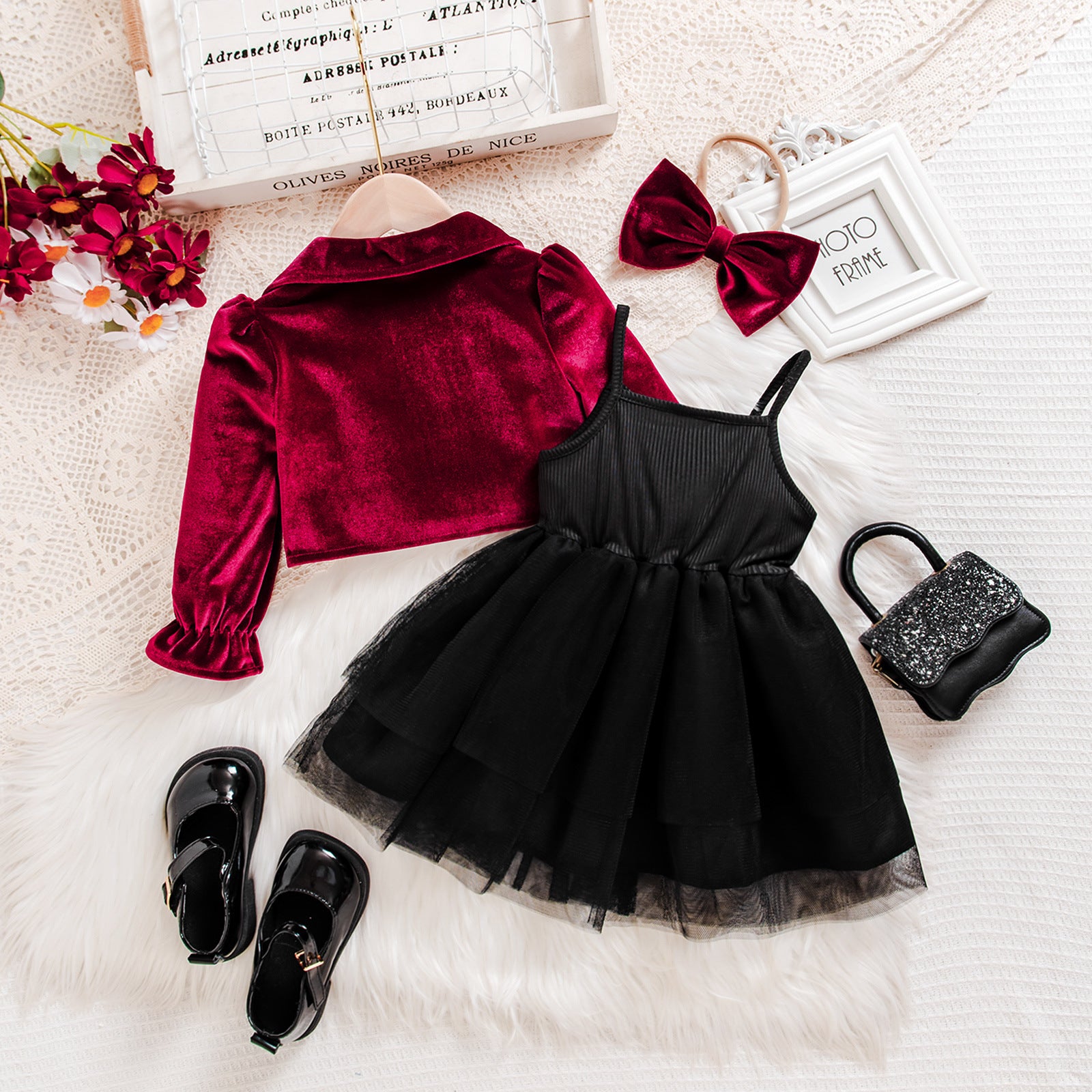 Baby Girl Black Mesh Bow Strapless 2 Pcs Set